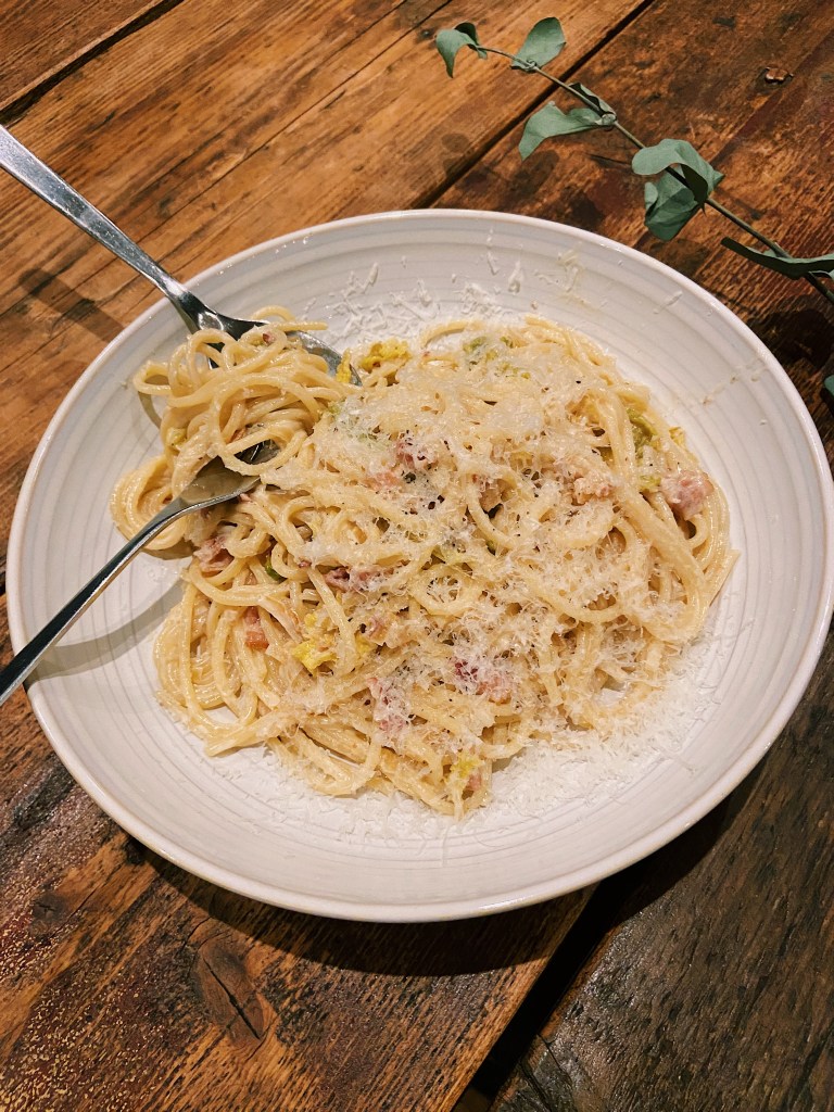 Creamy Savoy Cabbage and Bacon Spaghetti