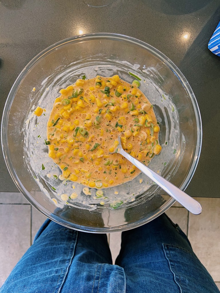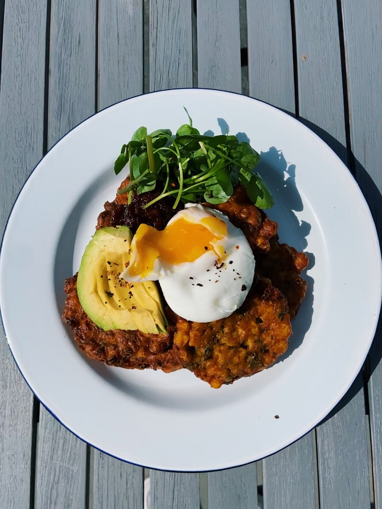 This time our all too familiar store cupboard staple is the humble tin of sweetcorn. Dispel the images of tuna and sweetcorn sandwiches conjured in your mind’s eye (even though it is the best sandwich filling, fight me) and picture this… sweetcorn fritters. A delicacy likely originating from Central America it has travelled all the way through time and across continents to the brunch tables of just about any self-respecting high-end café of today; see your Lounges or your BTP’s (Boston Tea Party for anyone unfamiliar with this wholesome café brand). While, at these cafés the fritter may be a vessel for a whole host of vegetables like courgette or carrot, in my kitchen tinned sweetcorn is king; it offers the perfect bite and burst of sweetness to a savoury brunch offering.